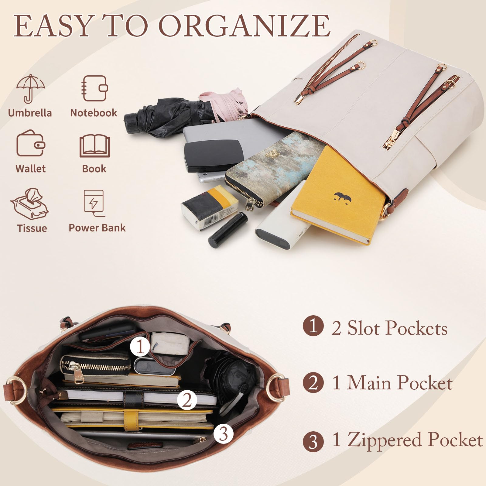 Set de 2 Bolsos Chase Chic para Mujer en Cuero PU – Hobo, Bandolera y Tote Grande, Colores Blanco y Marrón