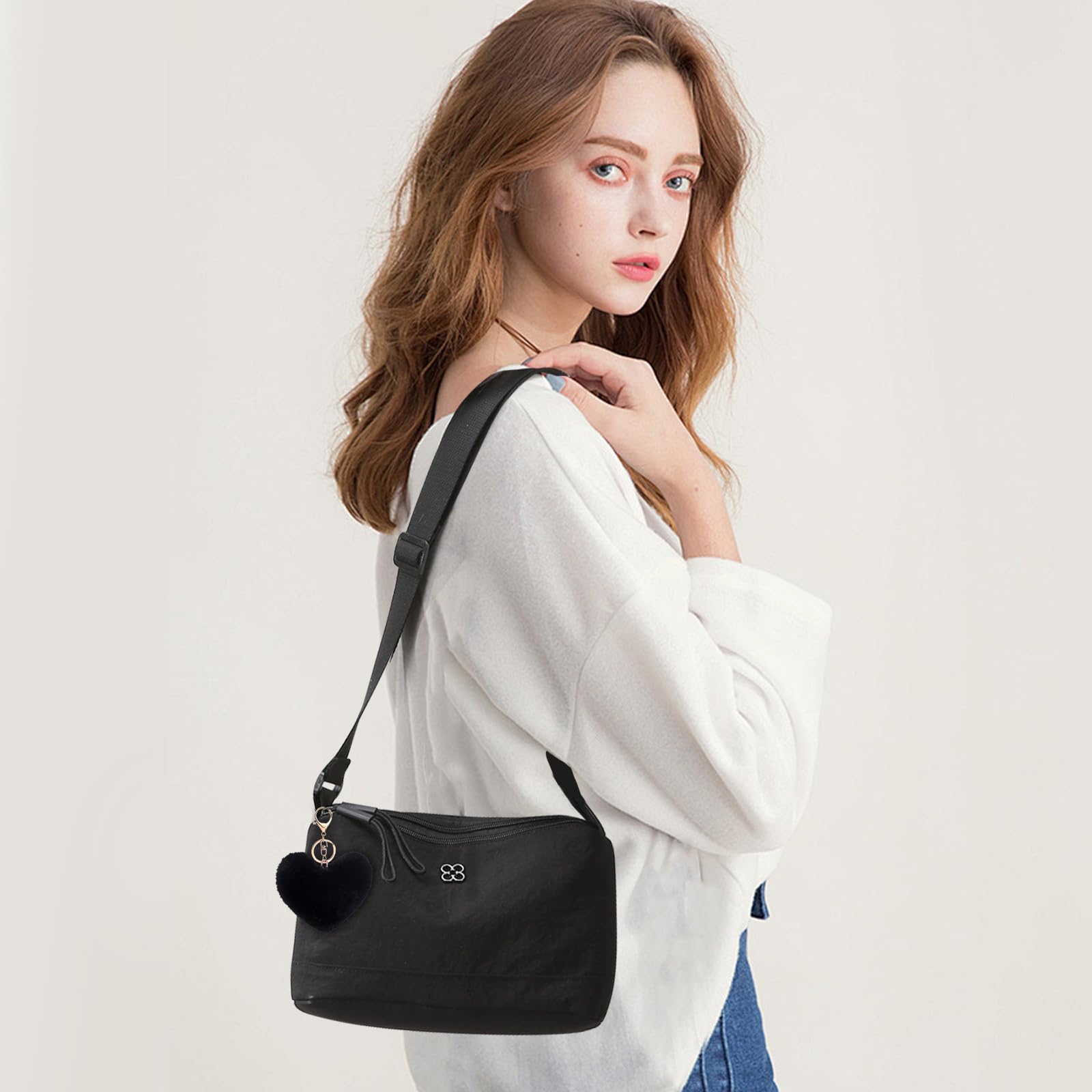 - 【Material de calidad】Este bolso satchel está hecho de nylon duradero con excelente resistencia a la abrasión, suave y simple, el material es ligero, lo que mejora la facilidad de uso, el encanto de bola de pelo en forma de corazón con colgante de hardware, añadiendo un toque de diversión a su bolso.
