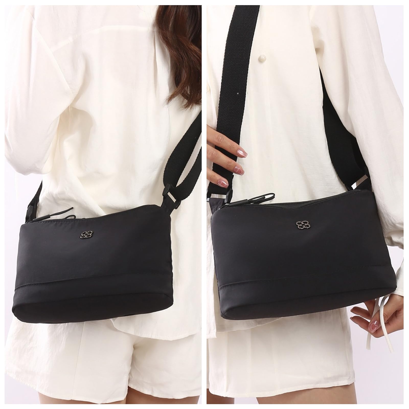 HENGBIRD Bolso Cruzado Mujer con Encanto de Corazón, Bolso Bandolera Mujer Mediano Nylon, Bolsa Mujer con Bandolera Ajustable, Multibolsillo Bolso Mujer Bandolera, Negro