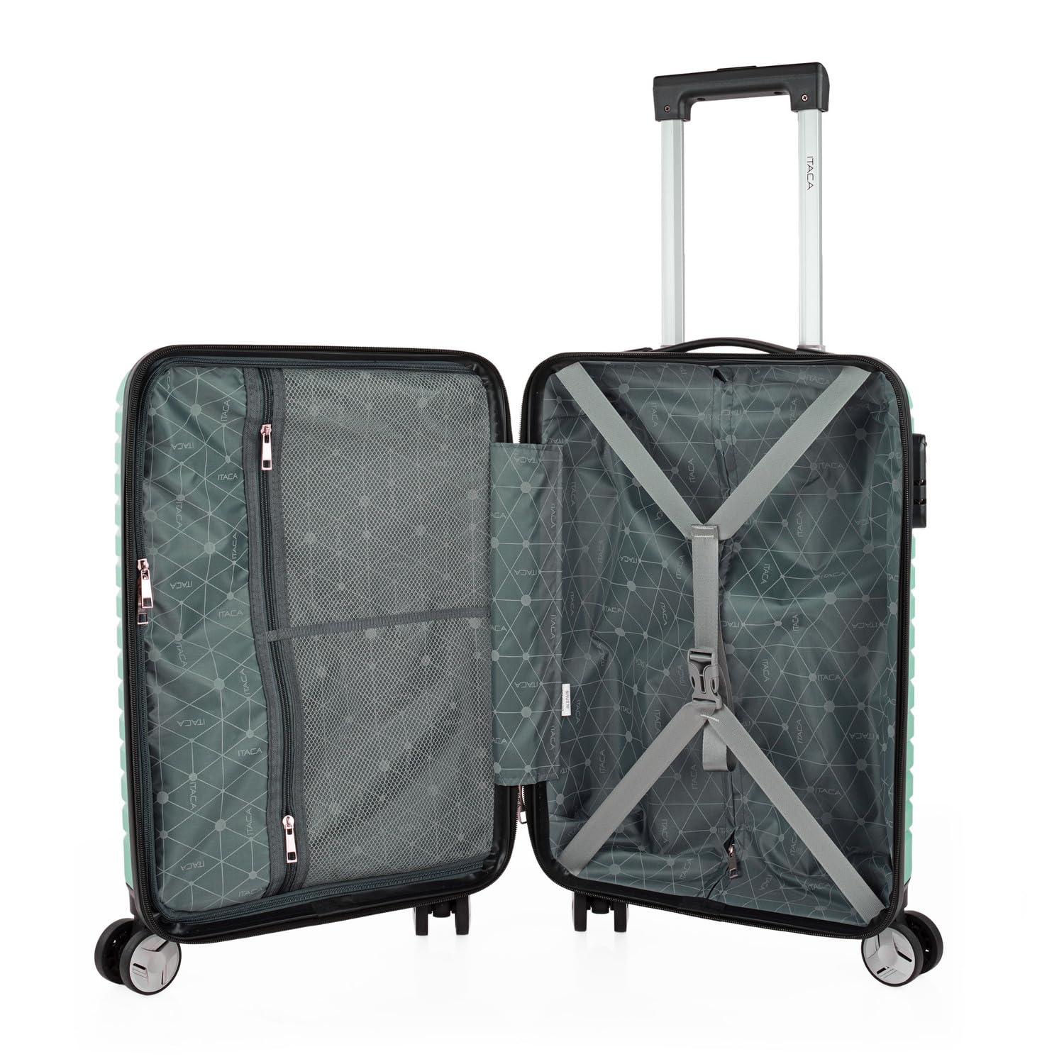 Maleta de Cabina ITACA 55x40x20 cm Rígida y Ligera con Ruedas Trolley – Equipaje de Mano con Candado de Combinación, Color Menta