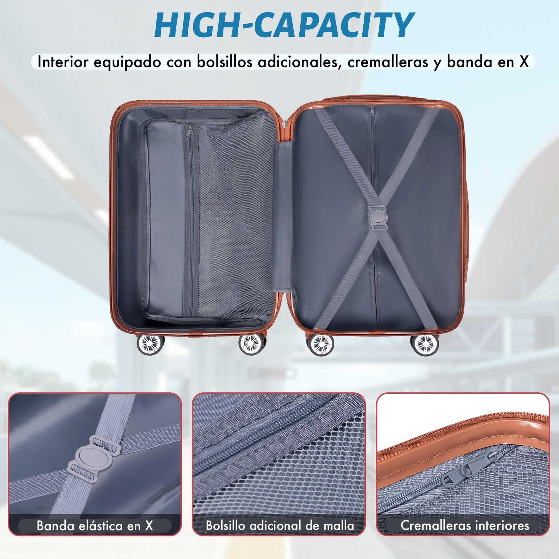 - DISEÑO ELEGANTE Y FUNCIONAL: Las maletas presentan un acabado moderno con detalles en color contrastante, ideales para viajeros que buscan estilo y practicidad. Además, su interior está completamente forrado, con separadores y correas ajustables para una organización eficiente del equipaje.