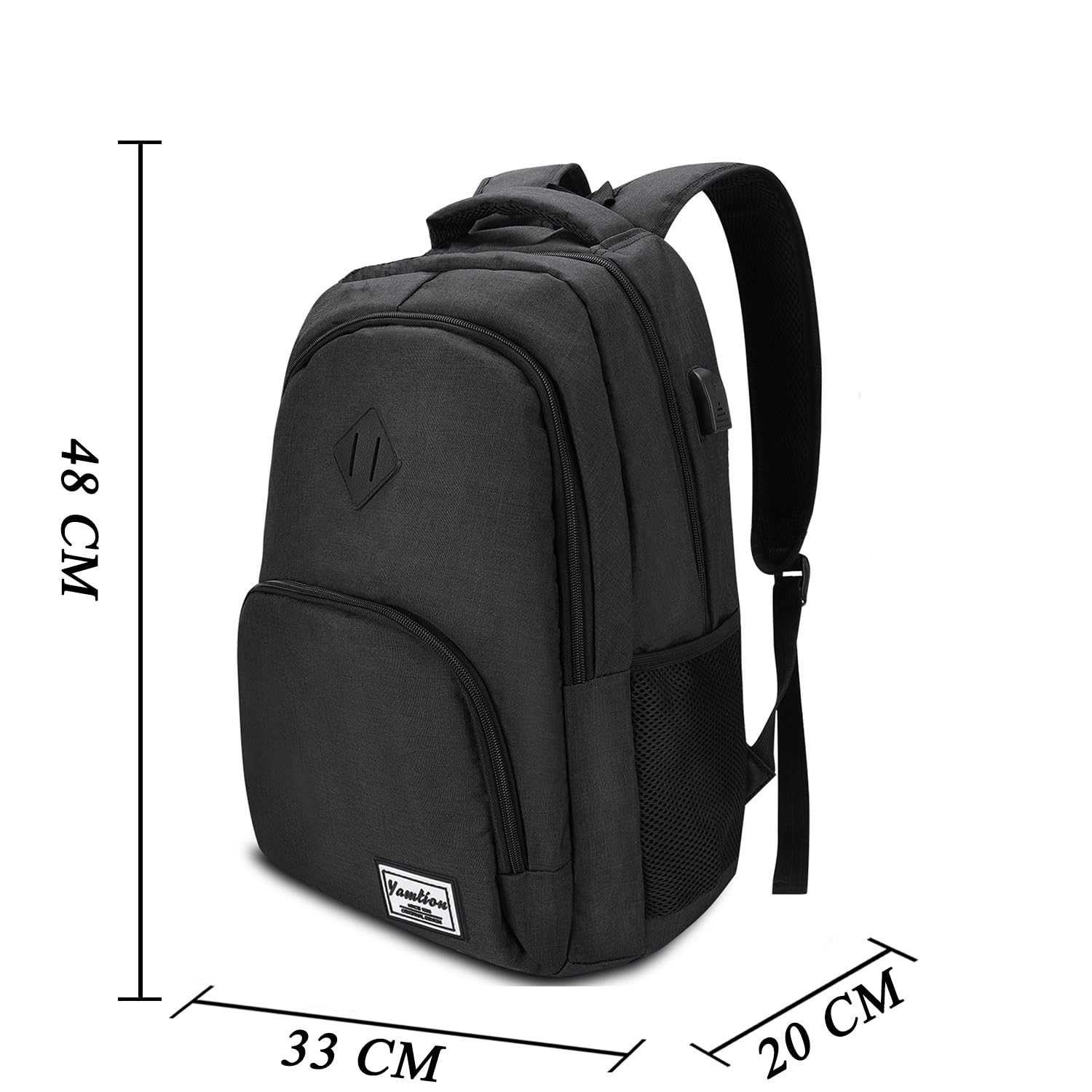 - YAMTION Conceptos básicos Estilo clásico: Dimensiones 48 x 33 x 20 cm, volumen 30 L. Peso 660 g. Tejido de poliéster impermeable. Compartimento acolchado integrado para portátil con correa elástica apto para dispositivos de 12", 13", 13,3", 14", 15", 15,6", 16".