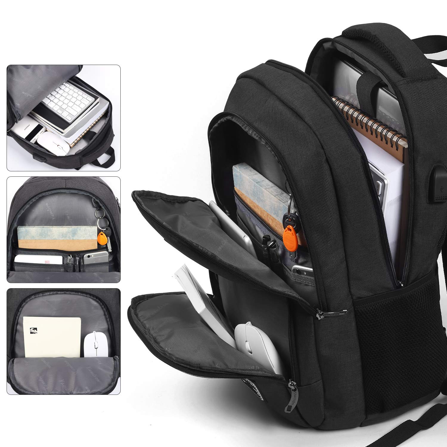 - Diseño de puerto USB: con el cargador USB integrado en el exterior y el cable de carga integrado en el interior, esta mochila USB ofrece una forma más conveniente de cargar su teléfono mientras camina. Ten en cuenta que esta mochila no se enciende, el puerto de carga USB solo proporciona un fácil acceso a la carga.
